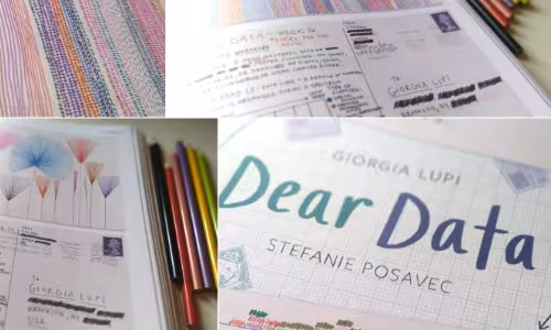 Todas estas postales se recogen en el libro “Dear data” donde también encontramos las pautas e ideas que fueron descubriendo las dos artistas durante el experimento. En este taller de "Yo, artista" conoceremos este proyecto de Giorgia Lupi y Stefanie Posavec, mediante el formato de "diario visual" vivenciando la expresión artística a través de datos personales.